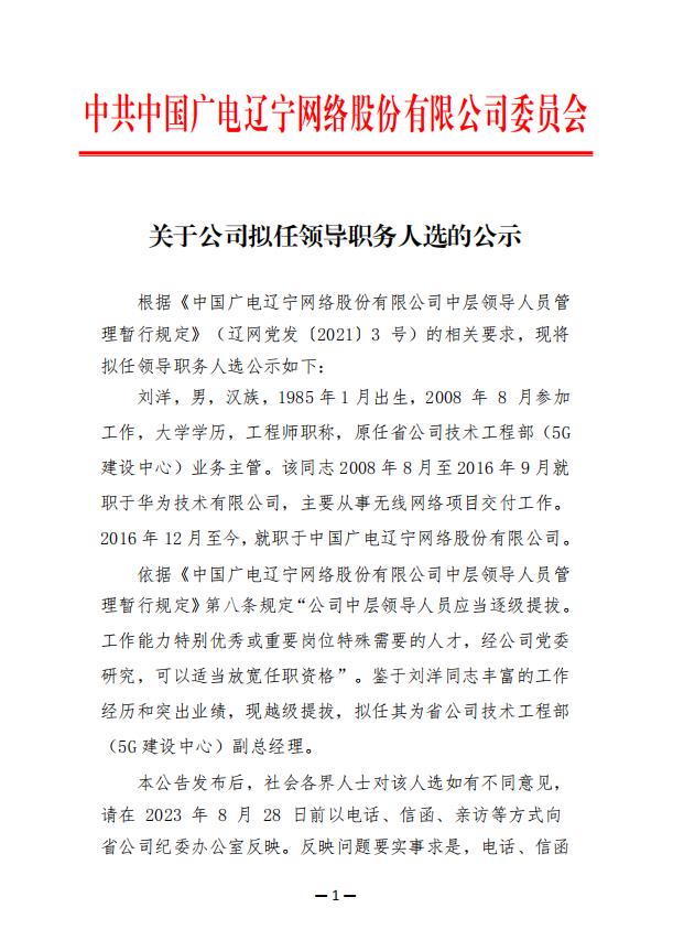 中国广电辽宁网络股份有限公司(简称中国广电辽宁公司)前身为成立于2010年2月的北方联合广播电视网络股份有限公司,系中央国有文化企业——中国广电网络股份有限公司省级子公司、辽宁省国有文化高新技术企业,是按照现代企业制度打造的集网络建设、传输、运营及多功能开发与应用为一体综合网络运营商。
