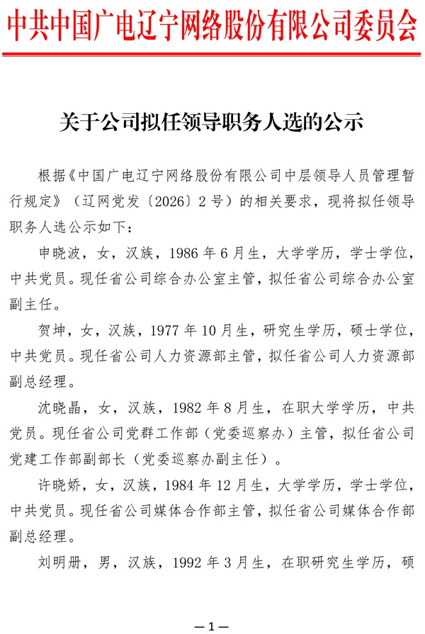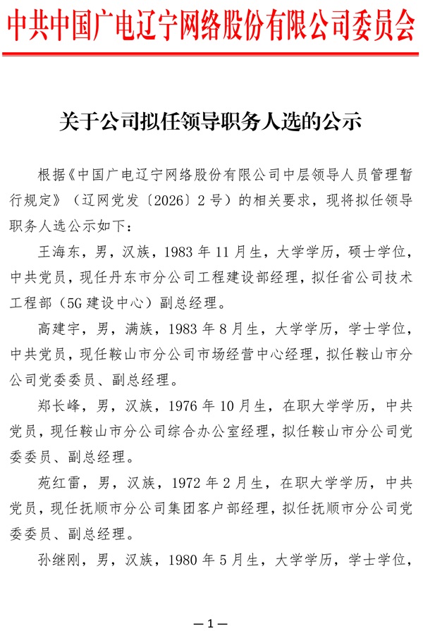 中国广电辽宁网络股份有限公司(简称中国广电辽宁公司)前身为成立于2010年2月的北方联合广播电视网络股份有限公司,系中央国有文化企业——中国广电网络股份有限公司省级子公司、辽宁省国有文化高新技术企业,是按照现代企业制度打造的集网络建设、传输、运营及多功能开发与应用为一体综合网络运营商。