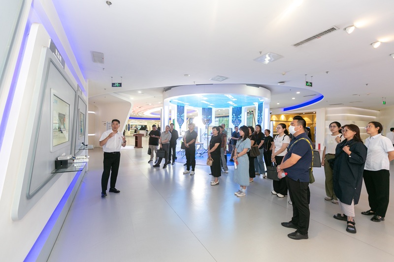 当日,新颖别致的广电展厅设计、充满未来感的室内装饰,瞬间点燃了“实名专员特训班”学员们的参观热情! 为节约研学时间,沈阳市职工大学带班老师科学规划,现场将学员分成两组交叉参观学习。