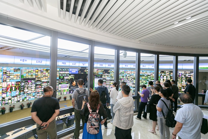 “真是‘科技点亮美好视听!’广电前沿科技令人大开眼界啊!”沈阳市教科文卫工会副主席那雪雷在参观结束时如是说。2025年9月9日下午,沈阳市教科文卫工会“实名专员特训班”近百名学员,在工会领导和沈阳市职工大学老师的带领下,来到中国广电辽宁网络股份有限公司(简称“中国广电辽宁公司”)调度指挥中心参观学习。中国广电辽宁公司党建工作部部长兼总部纪委书记刘云良、副部长兼总部工会副主席樊金洪代表公司相关领导,热情接待并作工会“实名管理系统”经验分享。