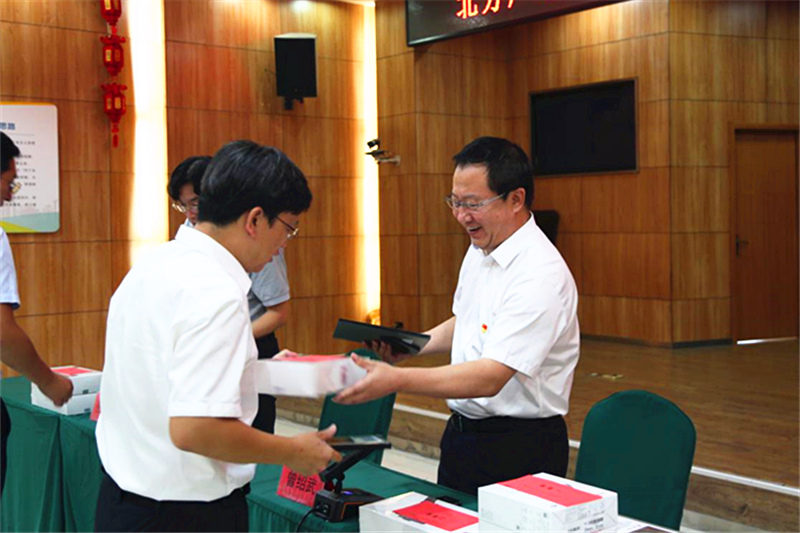 公司党委书记、董事长、总经理曾绍武同志为获奖作者颁奖