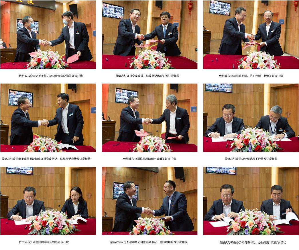 会上,曾绍武代表公司党委分别与公司领导班子成员、总助级领导人员及分(子)公司负责人签订了2021年党建目标责任状、意识形态安全责任书、经营管理目标责任状和安全运营责任状。