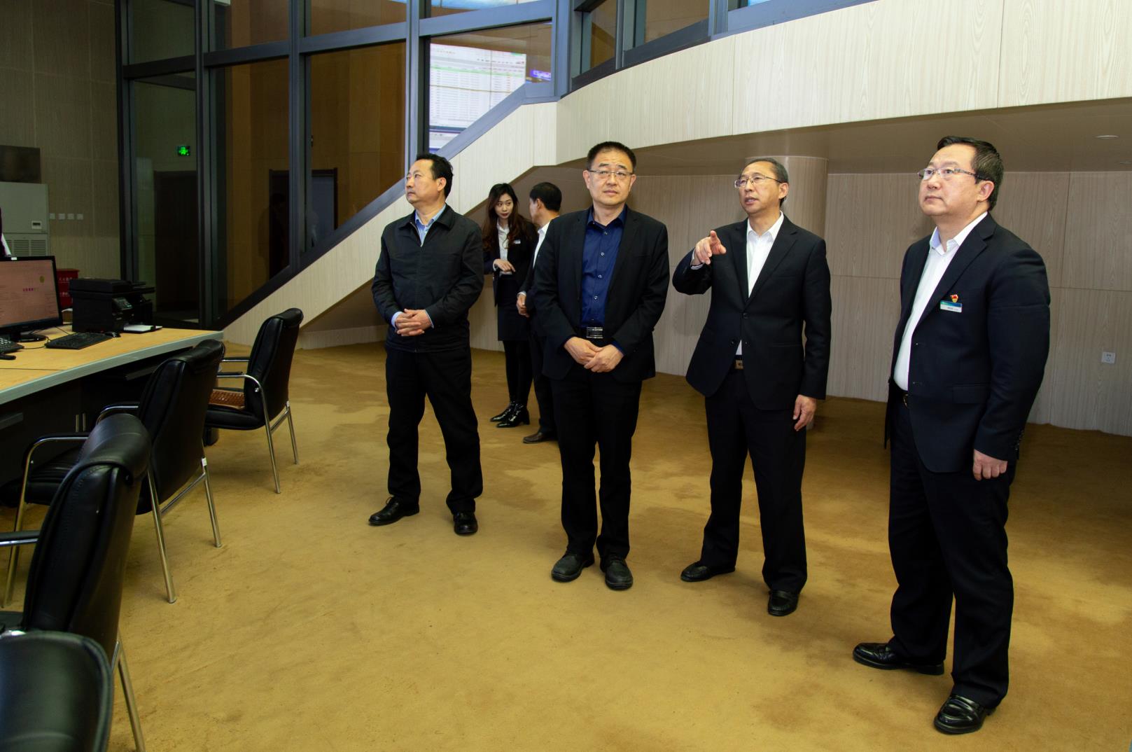 汇报结束后,检查组一行先后来到公司全省直播信号集中监控平台、UPS机房、高、低压配电室等地,实地察看了节目播出流程、设备运行等情况,重点检查了信号源稳定、供电保障、应急预案、值班记录等有关安全播出工作的落实情况,并对安全播出保障工作存在的问题提出了具体要求和整改意见。