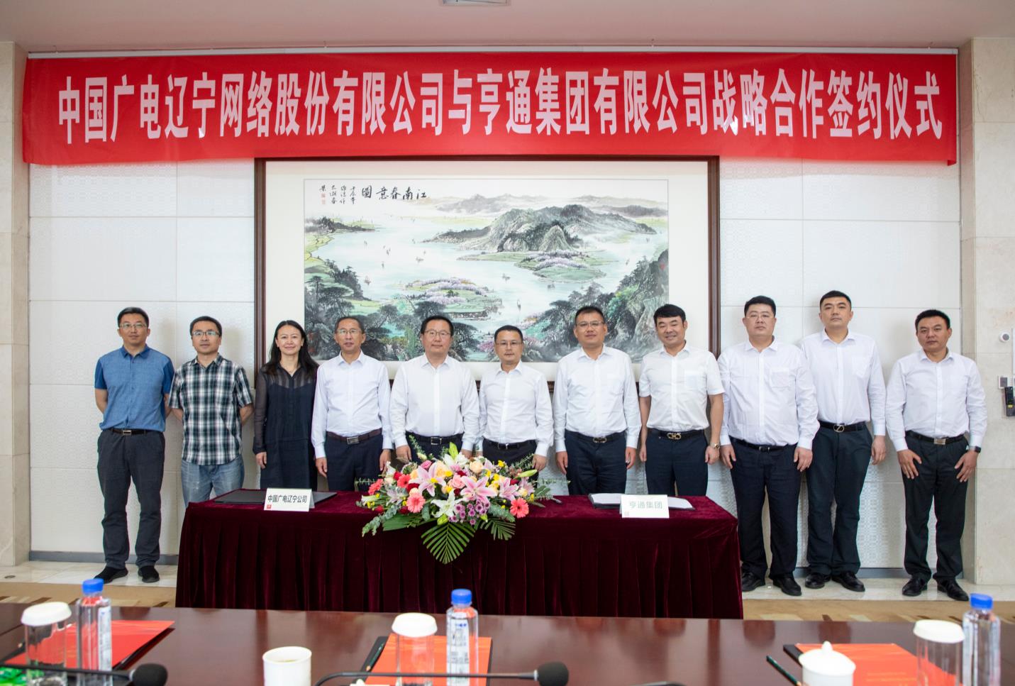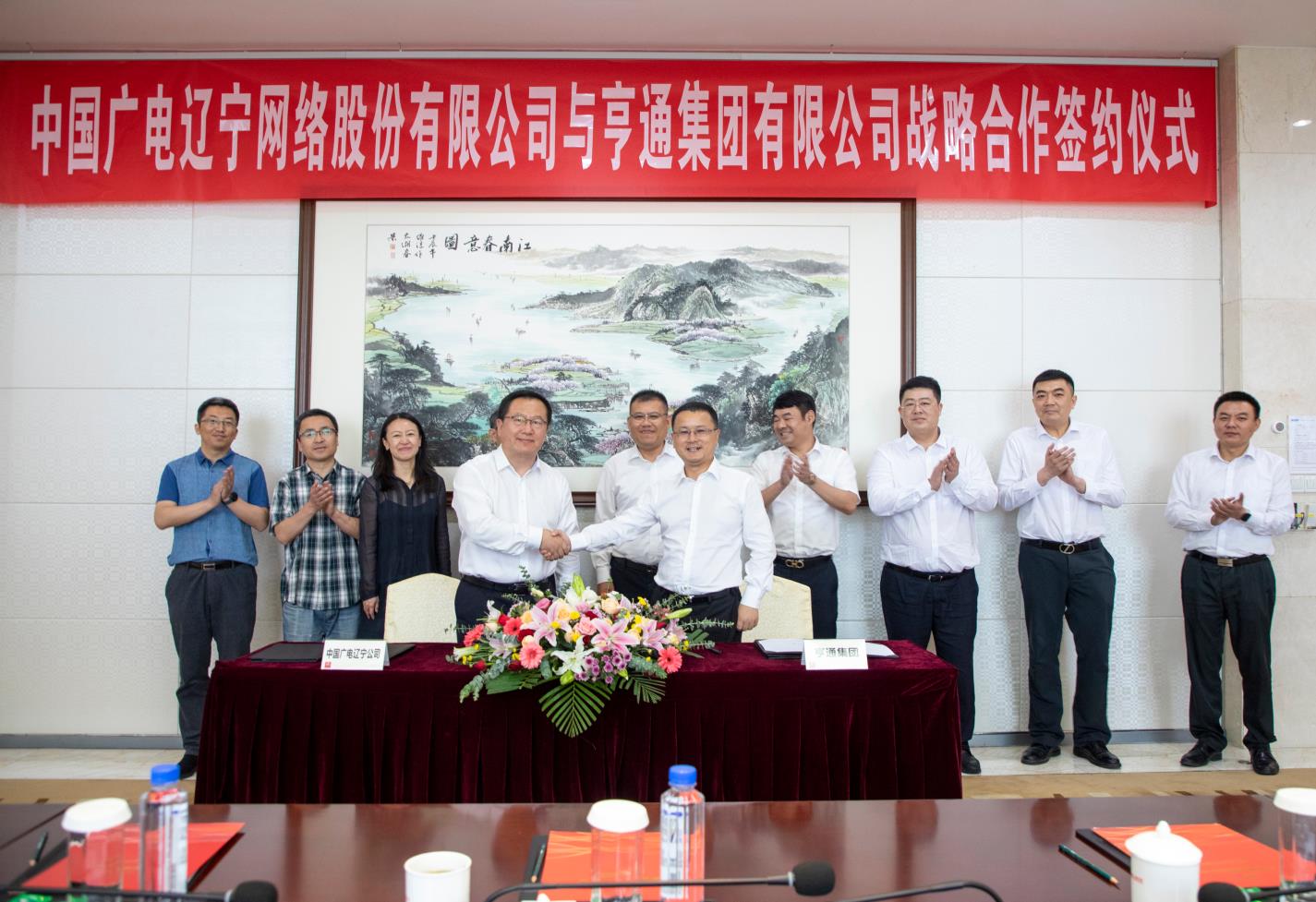 2021年6月4日上午,中国广电辽宁网络股份有限公司(简称辽宁广电)与亨通集团有限公司(简称亨通集团)战略合作协议签约仪式在苏州亨通集团总部举行。辽宁广电党委书记、董事长、总经理曾绍武,总工程师王兆恒,总经理助理王婷与亨通集团执行总裁钱建林,运营管理中心总经理尹纪成,通信产业集团副总裁、亨通光电总经理张建峰出席了签约仪式。