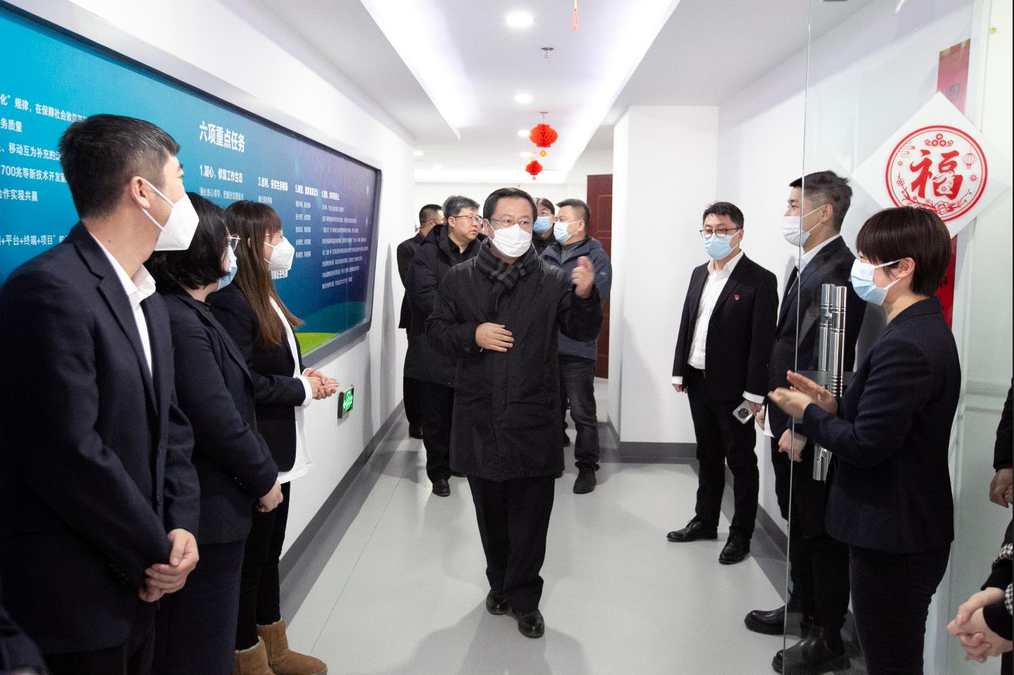 2023年1月20日下午,中国广电辽宁网络股份有限公司(简称中国广电辽宁公司)党委书记、董事长曾绍武带队赴公司总部丁香湖播控中心,开展节前最后一次安全大检查。公司党委副书记、纪委书记苏万宝,党委委员、副总经理张晓钧,党委委员、副总经理马震、李成雨,党委委员、副总经理(总会计师)王婷及公司相关职能部门负责人陪同检查。