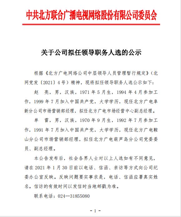 关于公司拟任领导职务人选的公示