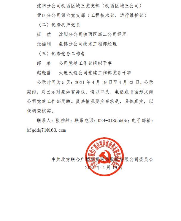 太阳成集团tyc138网络公司党委关于全省和省(中)直企业“两优一先”推荐对象的公示